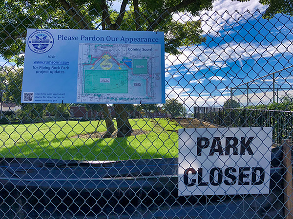 The park will remain closed to the public to allow final fence installation, replacement of park benches, and 9/11 monument installation. Landscape plantings will occur once weather conditions permit in the spring. Piping Rock Park will officially reopen in the Spring 2019.
