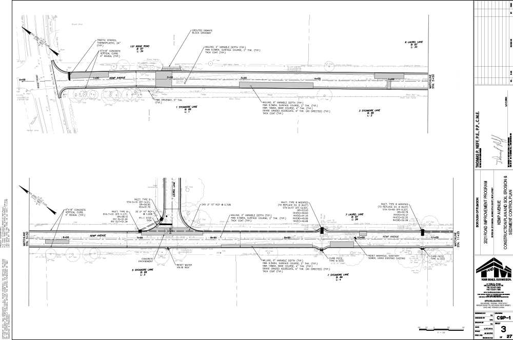 The 2021 Road Improvement Program will include Kemp Avenue, Elm Lane, Laurel Lane, and Auldwood Lane. The scope of improvements proposed on all the streets will generally consist of installing new concrete curbs, restoration of lawns behind newly installed curbs, restoration of driveways impacted during curb construction, removal of the existing surface pavement, repaving the entirety of the street, and installing new traffic striping. The work on Kemp Avenue will also include extending the existing drainage system to the intersections with Elm Lane and Laurel Lane.